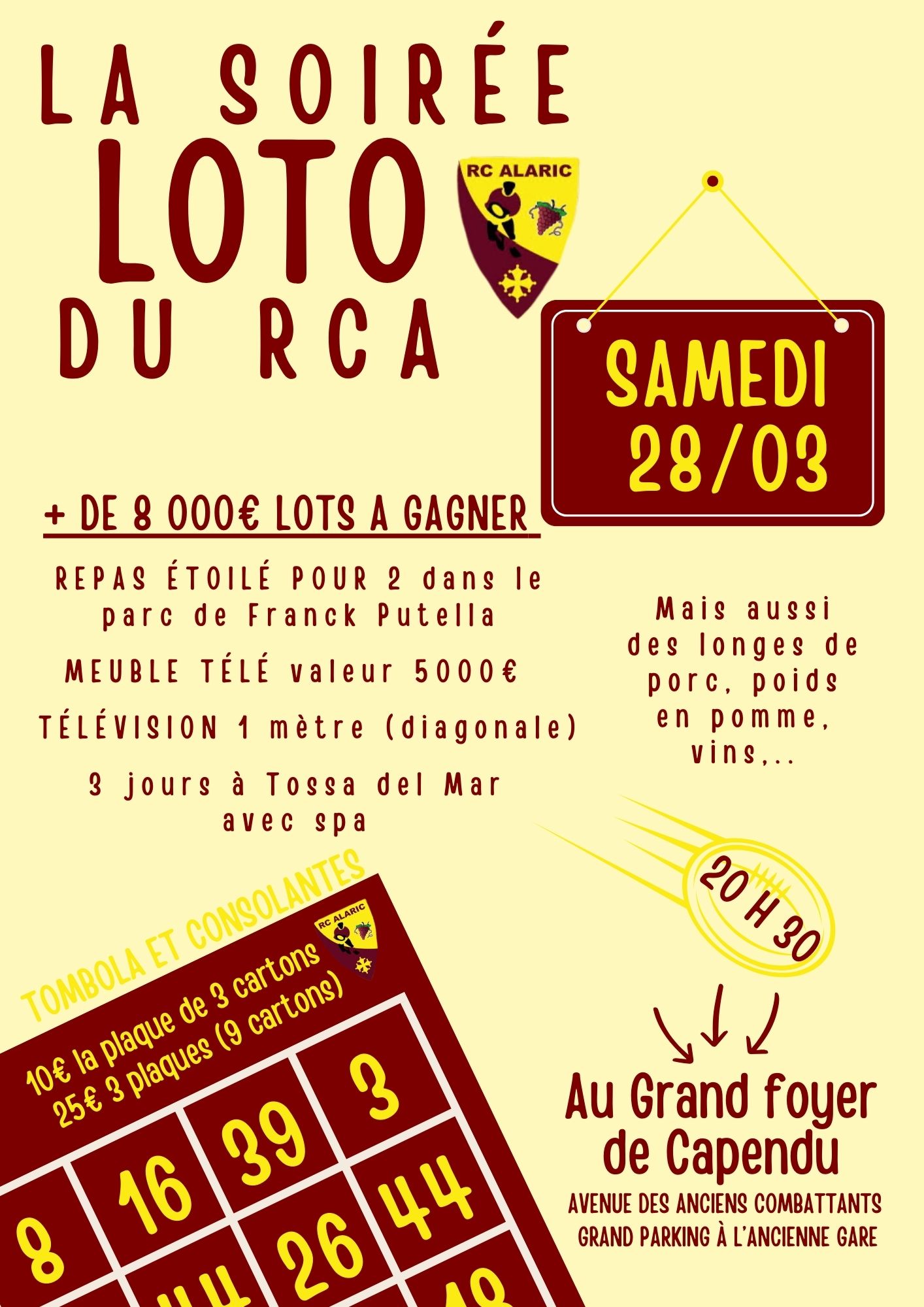 LOTO DU RCA A CAPENDU LE 28 MARS 2026